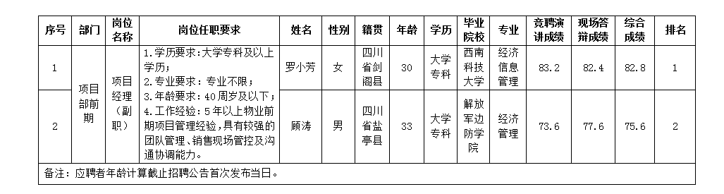 根据绵阳市MK体育安和物业服务有限公司发布的招聘公告及招聘相关规定,经竞聘演讲、现场答辩等程序,现将综合成绩予以公示。