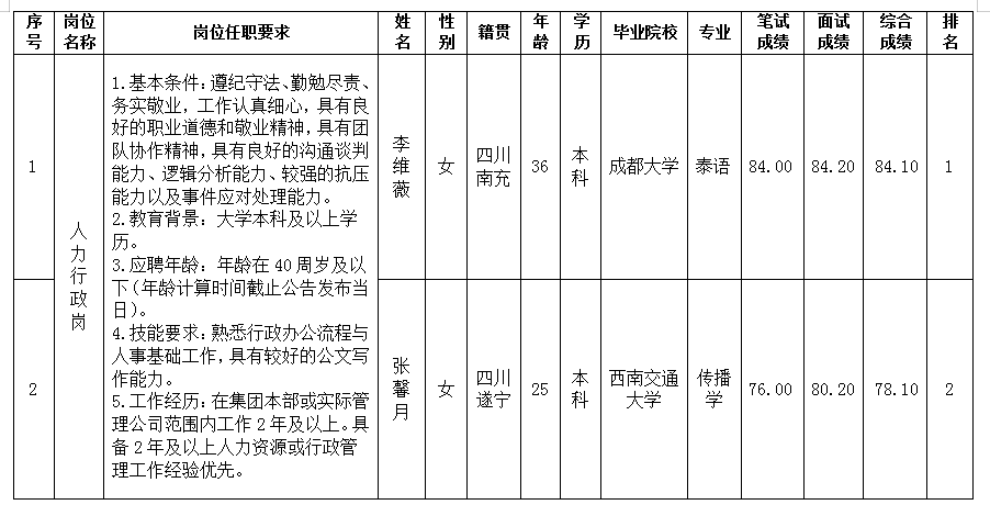 根据绵阳MK体育产业投资有限公司发布的招聘公告及招聘相关规定,经笔试、面试等程序,现将笔试、面试成绩予以公示。